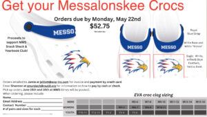 Looking to support our Messalonskee Middle Schoolers? Order your very own Messo Crocs today! All proceeds will go to support the Messalonskee Middle School snack shack and Yearbook Club!